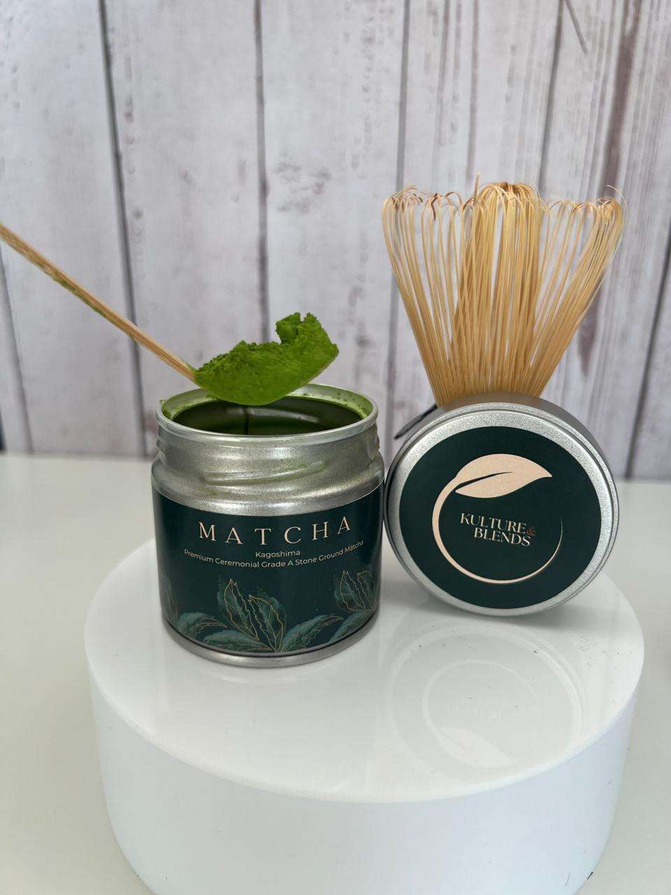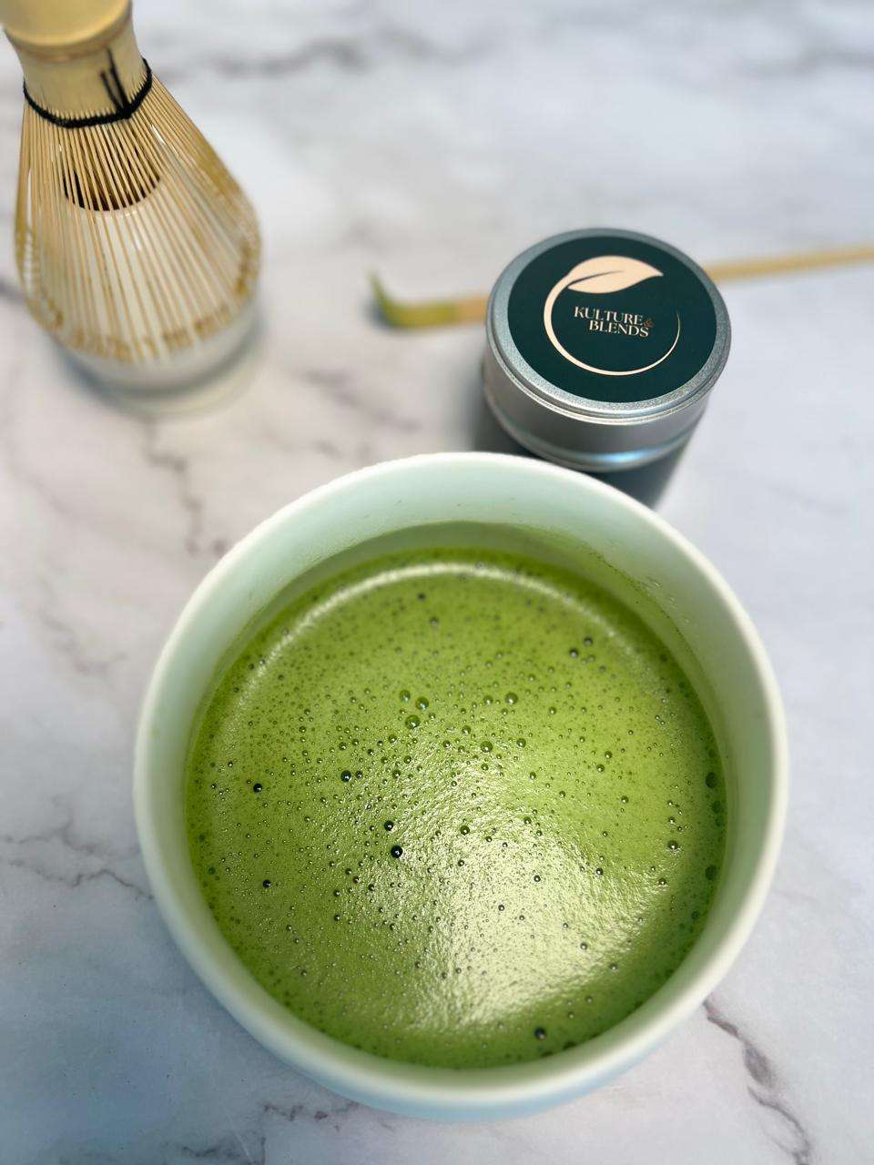 Our top tier ceremonial matcha are handpicked by skilled Japanese farmers. Using only first flush (Ichiaban) Each leaf is traditionally ground using Granite stone. High in antioxidants and chlorophyll, the subtle sweetness derived from L-theanine offering a sophisticated fragrance, vibrant green hue, and a rich umami flavor profile, Its smooth and creamy texture provides a luxurious mouthful with a clean refreshing finish. Sourced from Kagoshima’s nutrient volcanic rich soil and ideal climate our matcha embodies purity and quality at its finest.